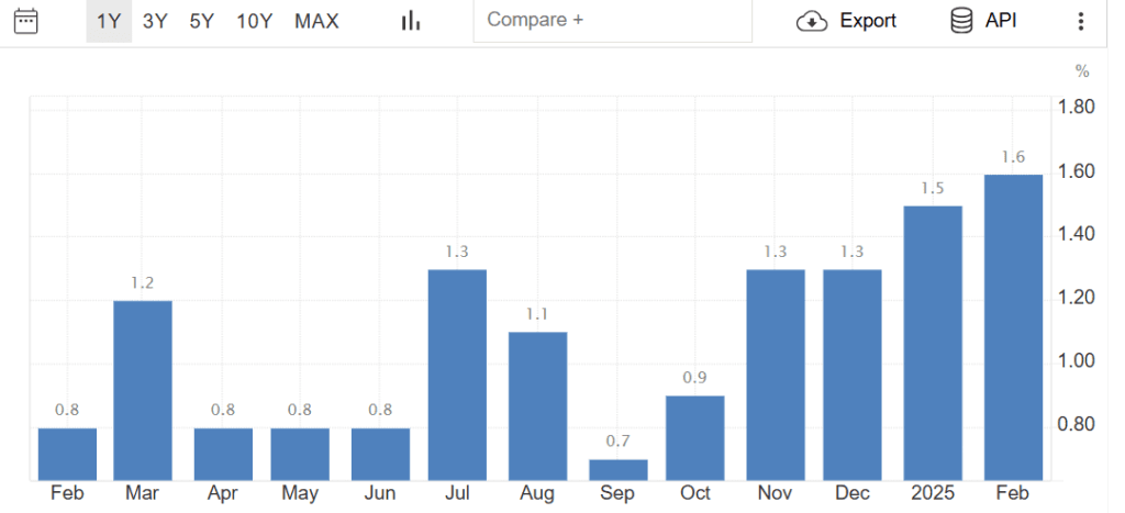2025-03-17 09:00 AM Inflation Rate YoY Final Feb 1.6% 1.5% 1.7% 1.7%